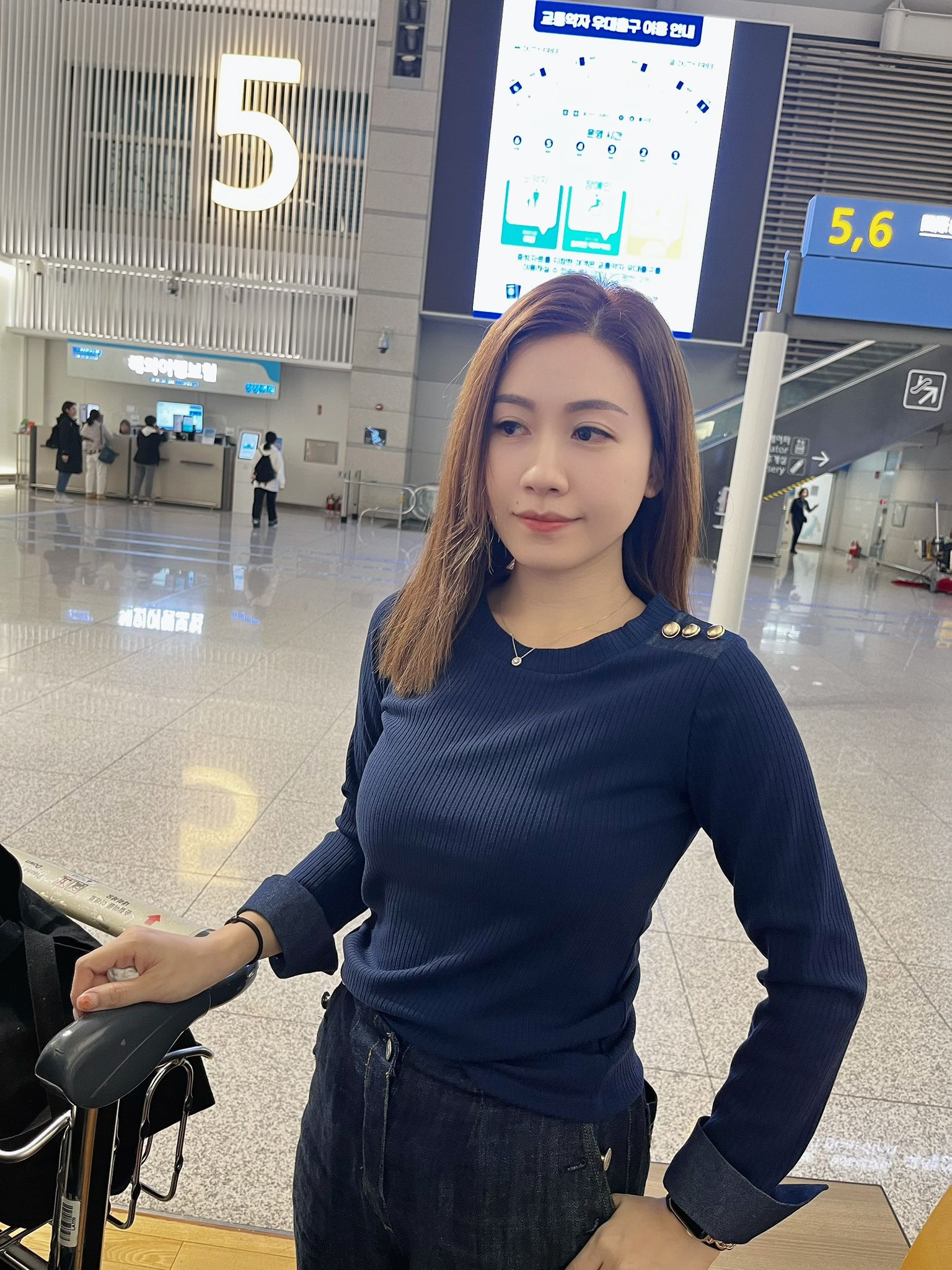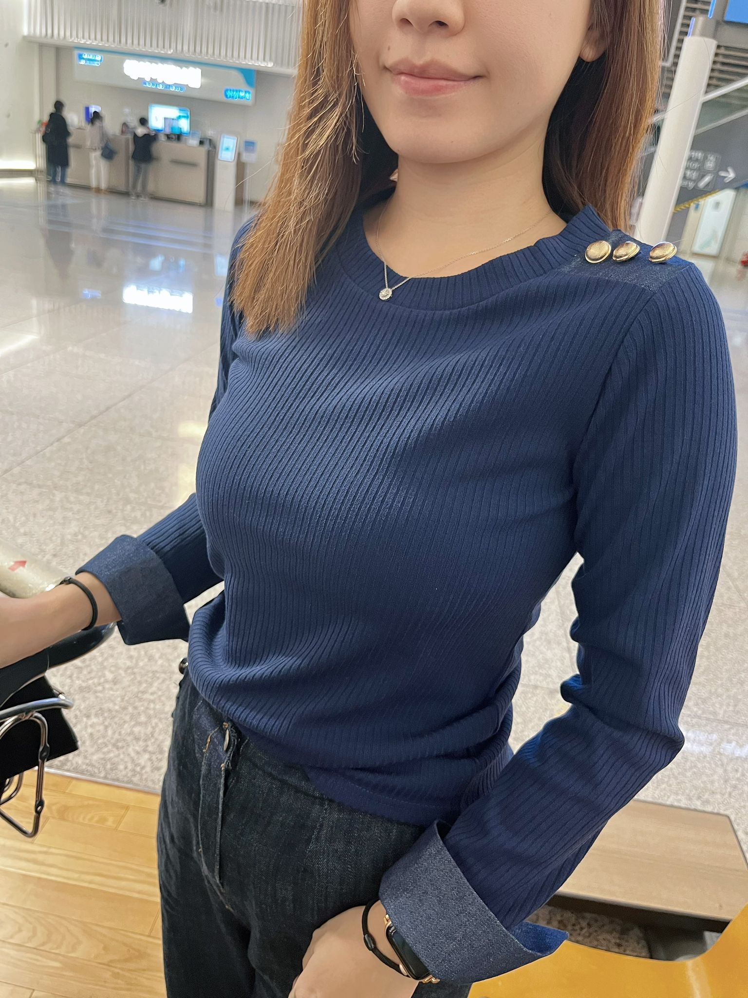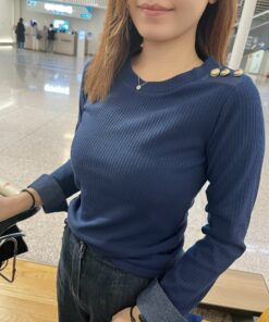 ✈️落機Top |《直紋靚靚鈕扣牛仔手袖上衣》