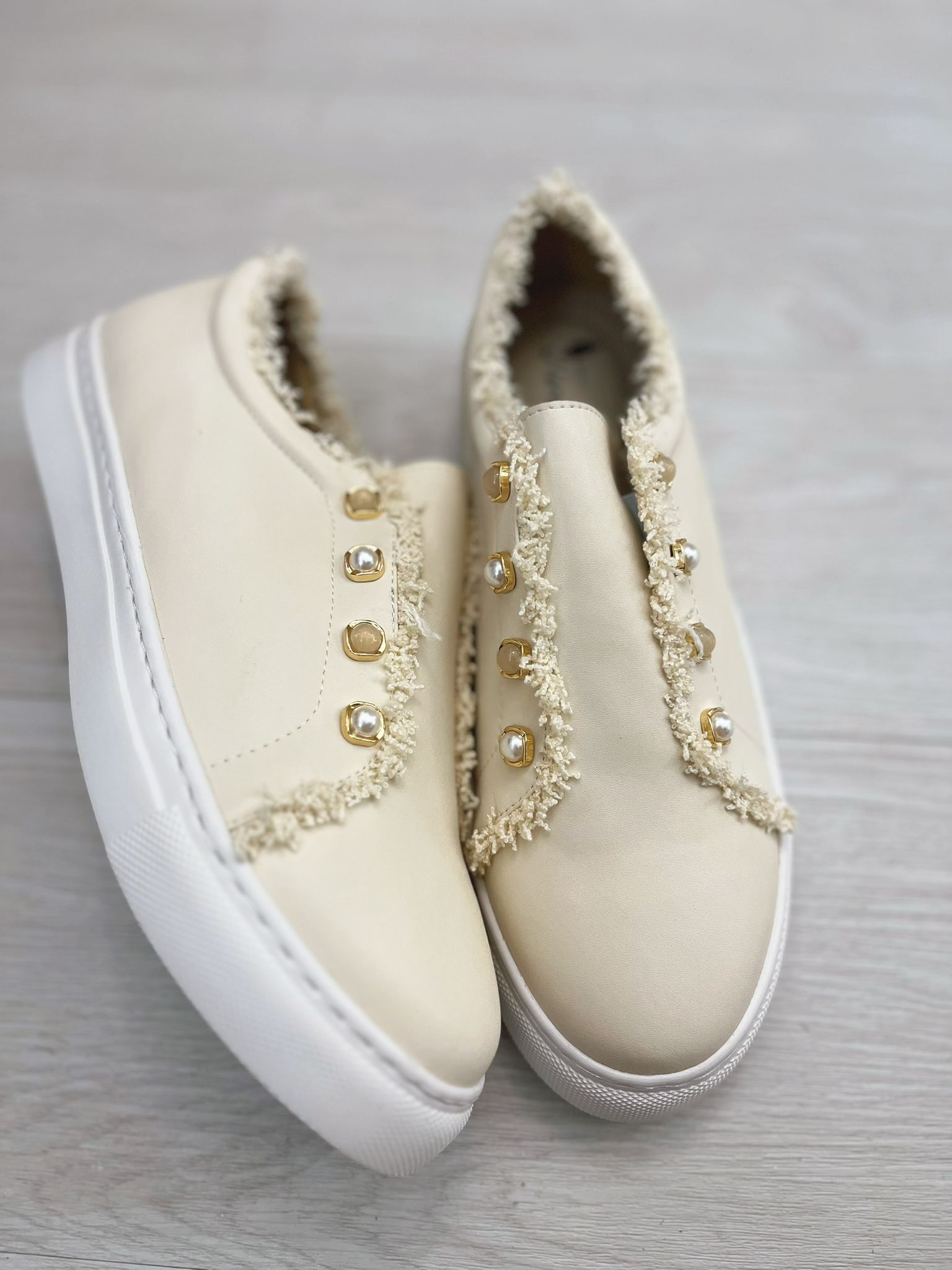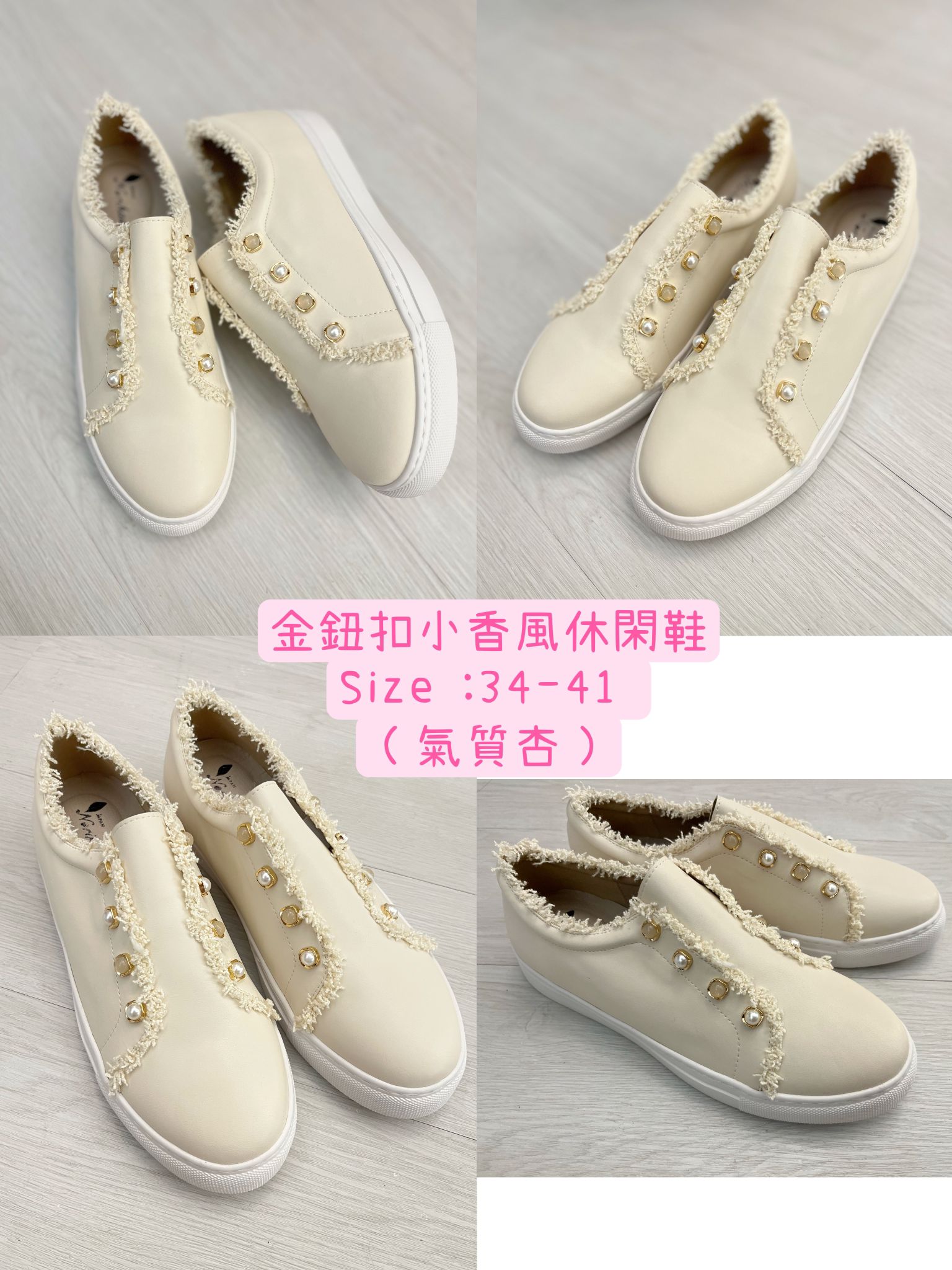 熱銷.小香金鈕扣小白鞋(米白色)