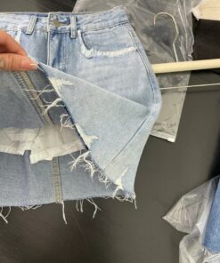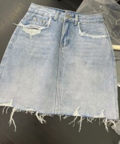 磨爛口袋設計彈力牛仔裙(淺藍色)