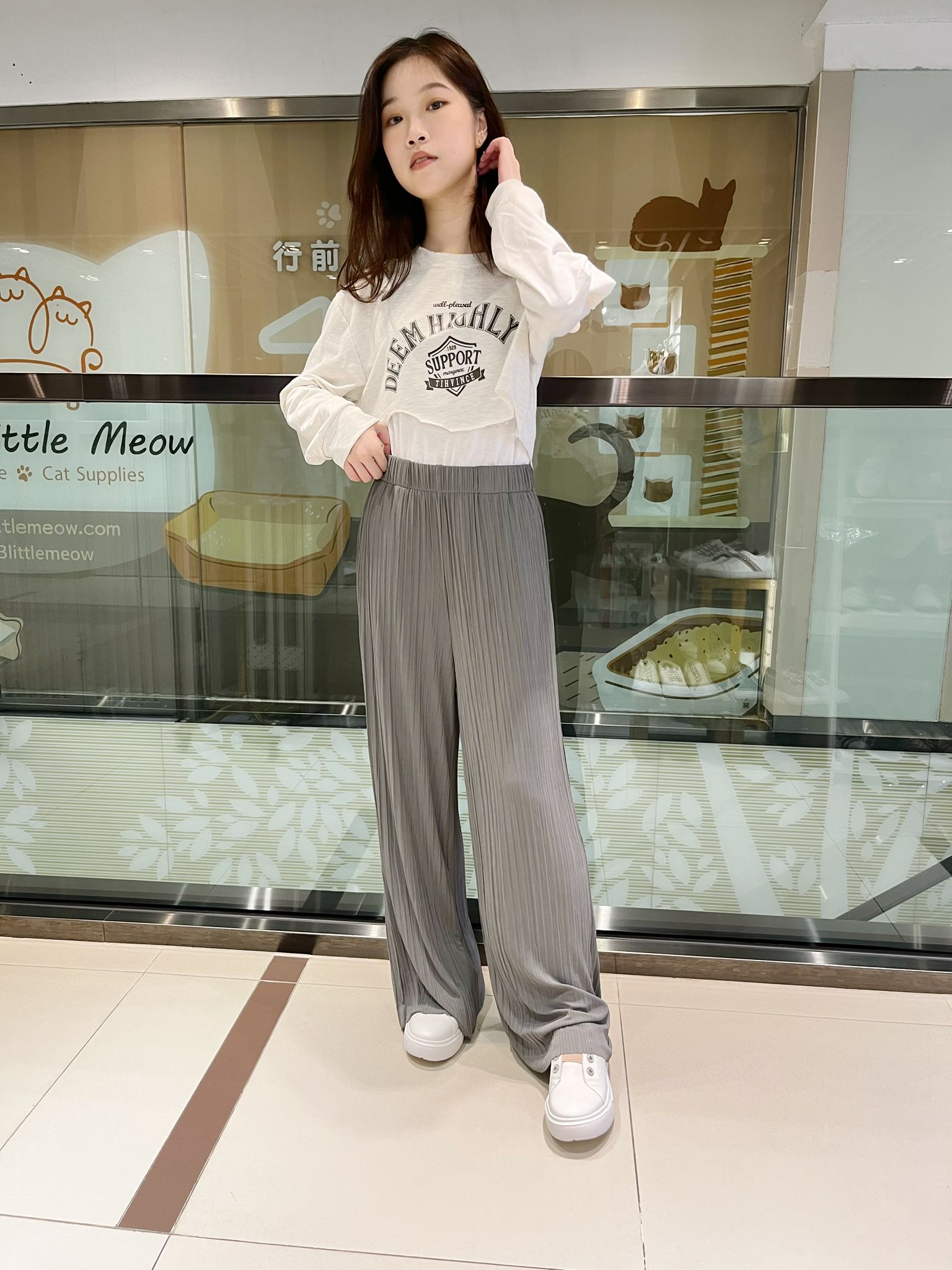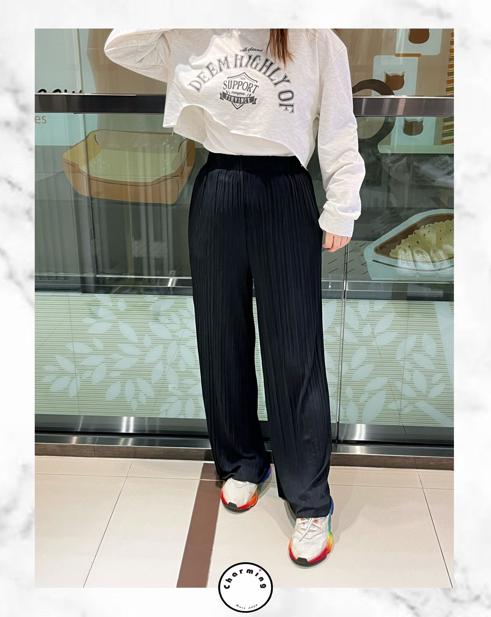 2色~橡筋超密褶間長棉褲