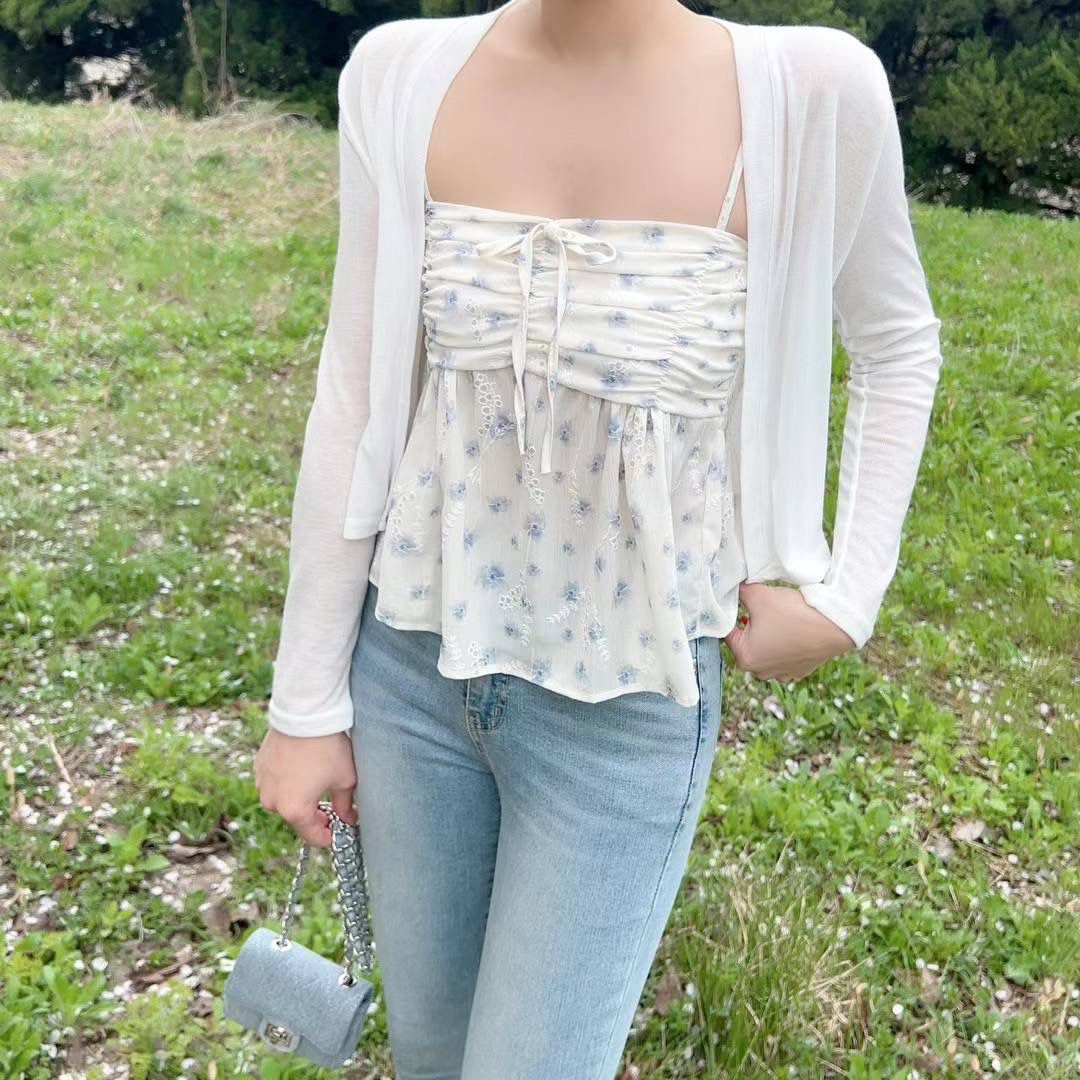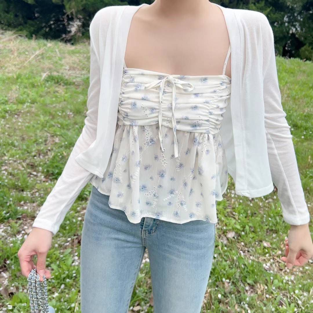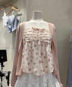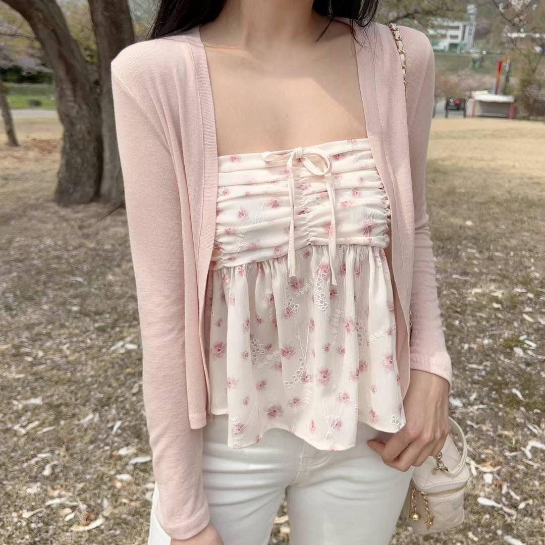 Hipping Cardigan + Flower Frill Sleeveless Blouse | SET