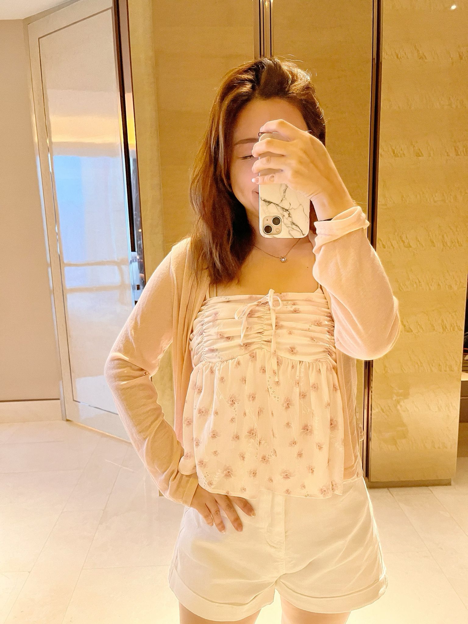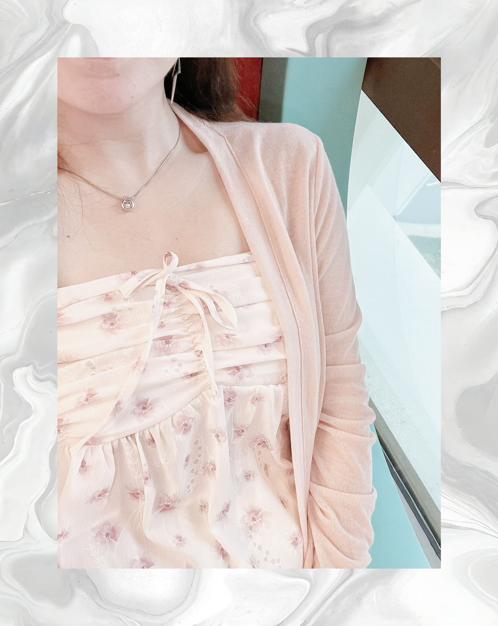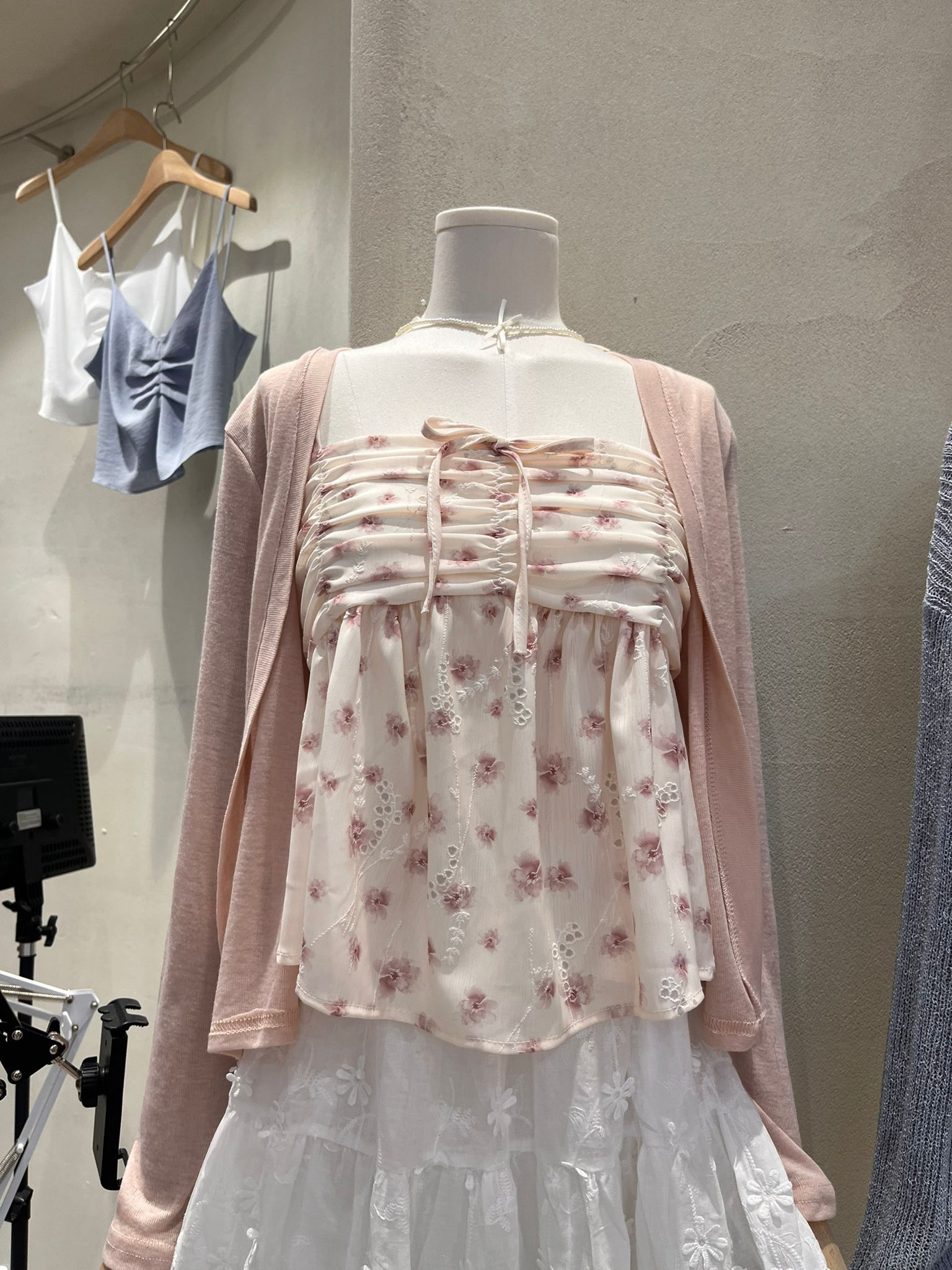 Hipping Cardigan + Flower Frill Sleeveless Blouse | SET