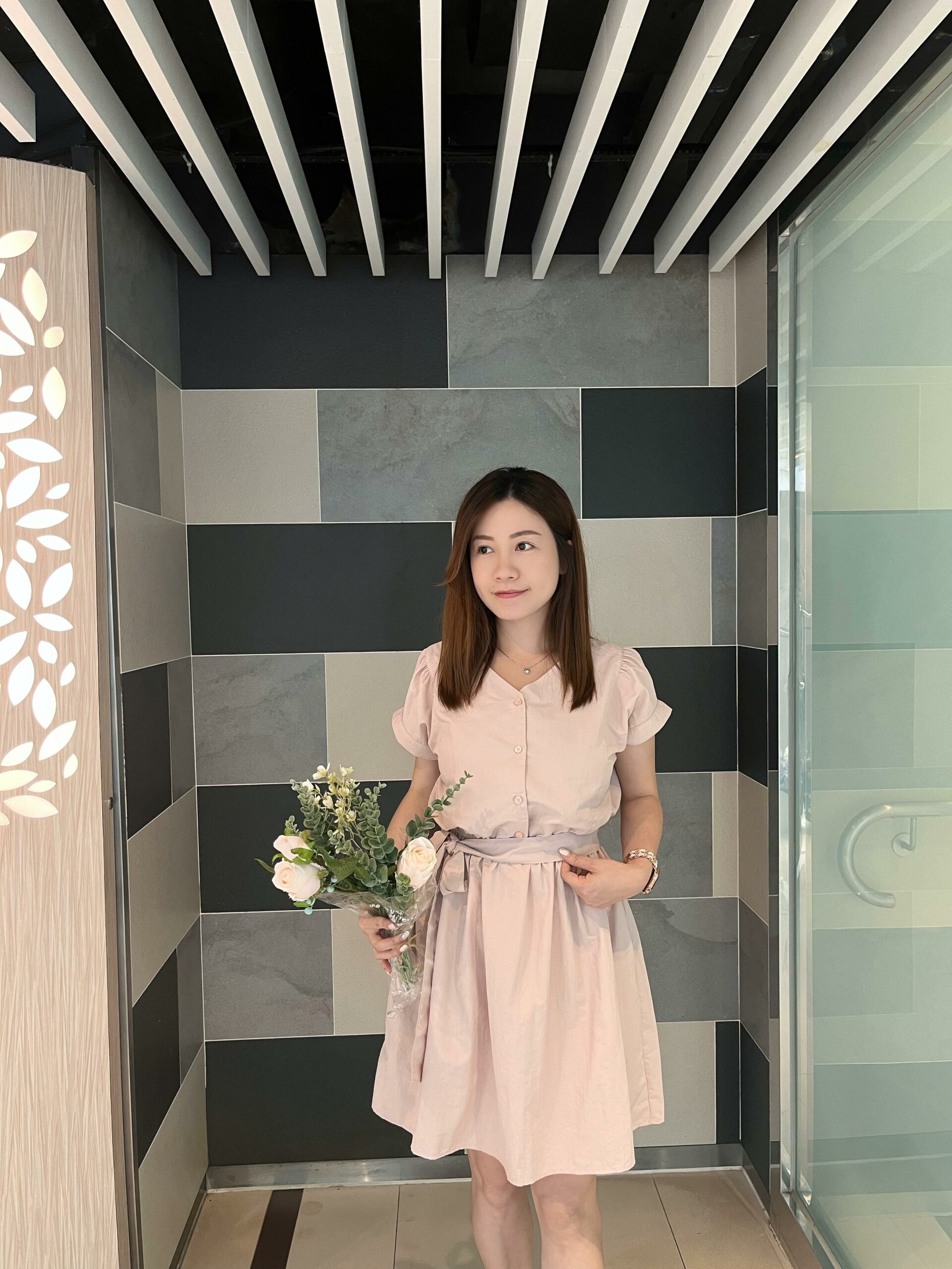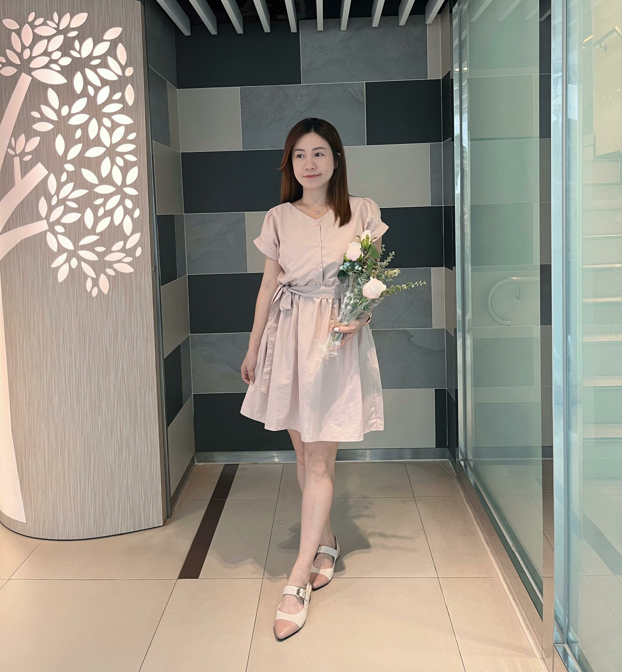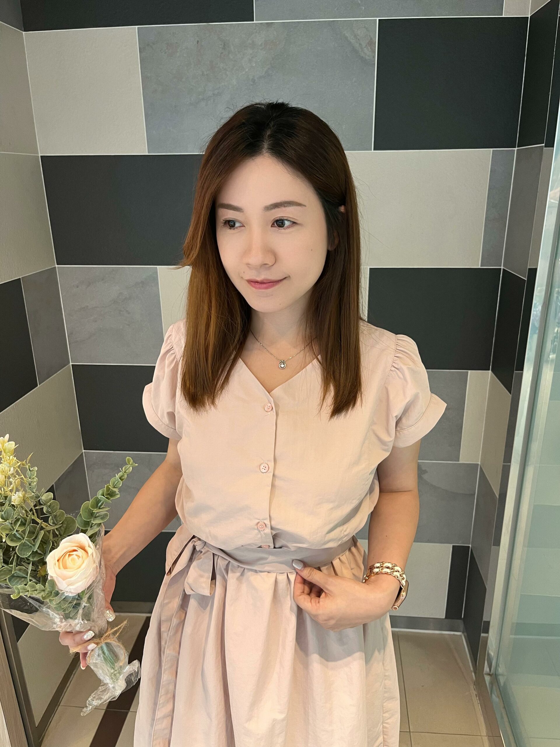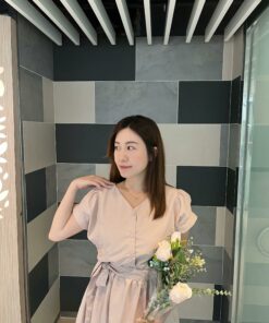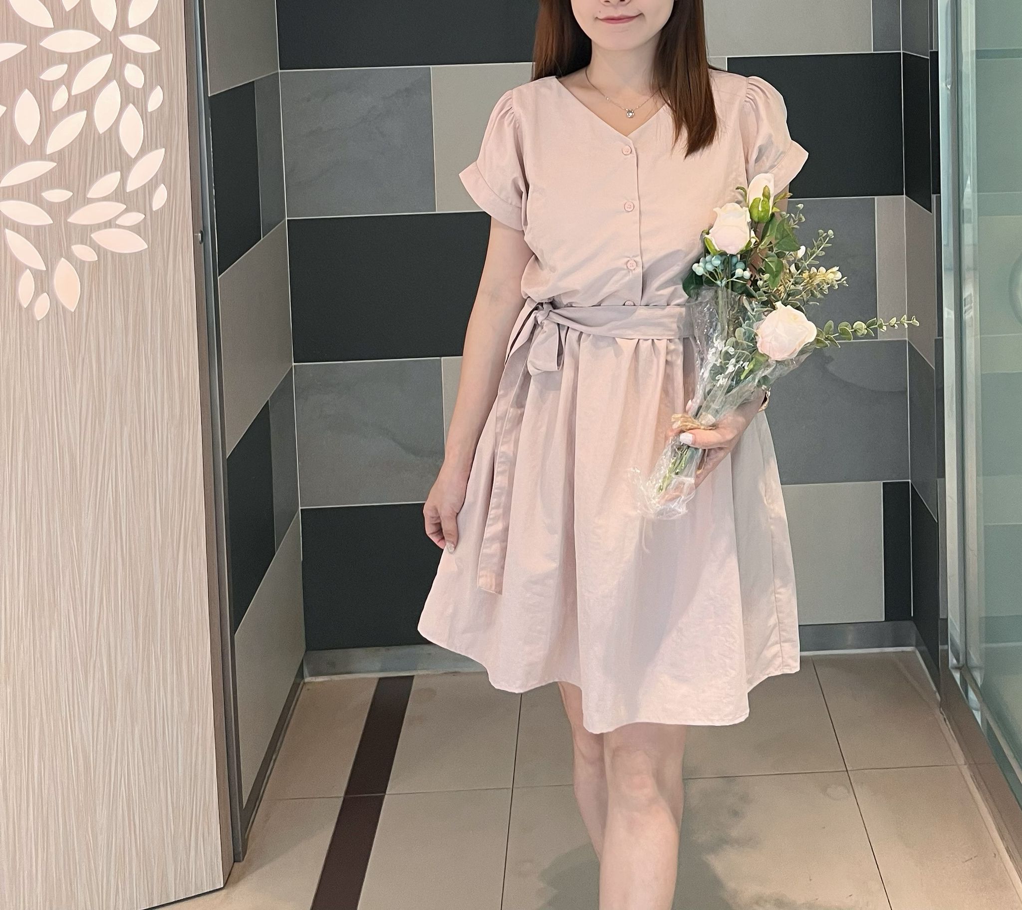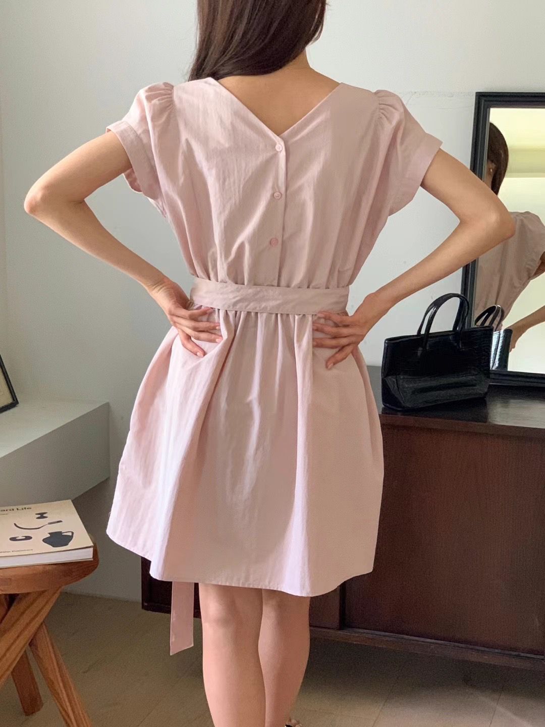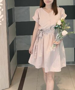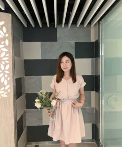 KR 甜美潑水料洋裝 / 前後兩穿 -PINK