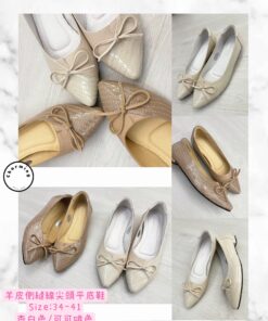 拼色兩著尖頭flats